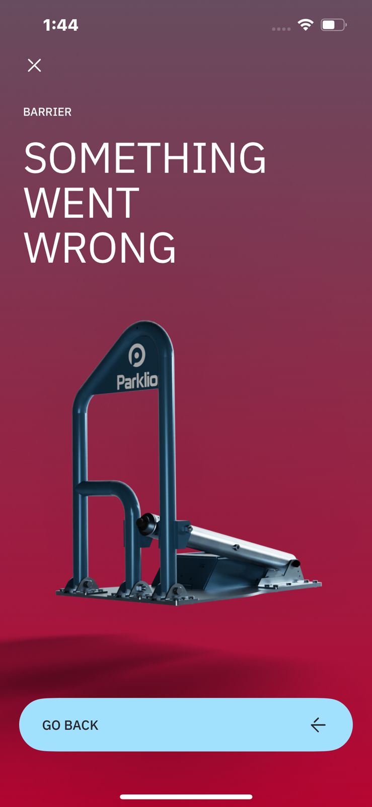 You can find a photo of the error message “Something Went Wrong” that appears when adding a Barrier in the Parklio Connect app at the following link: