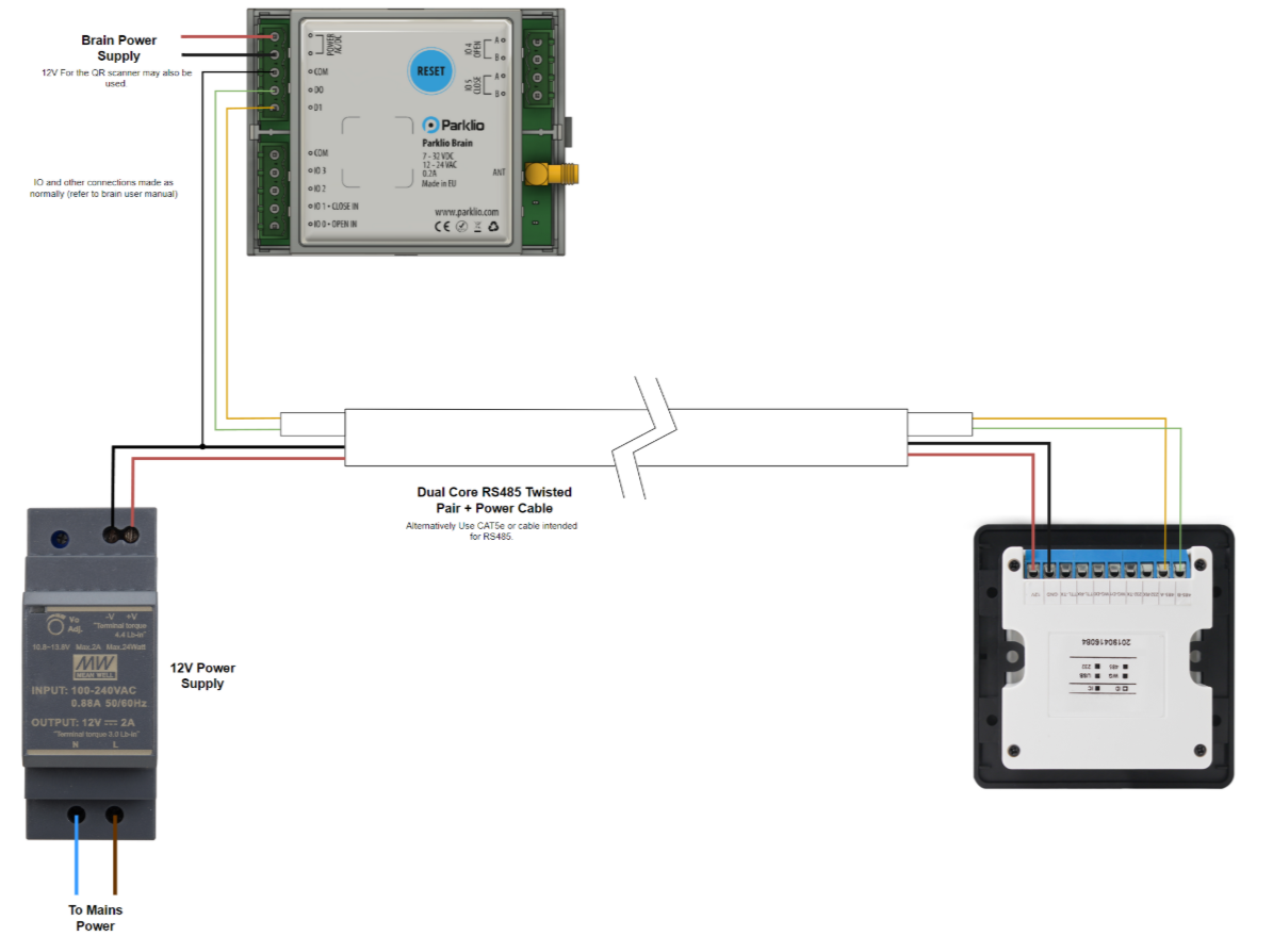 To connect QR reader to Parklio Gate please refer to the images below for a clear illustration of the connection:
