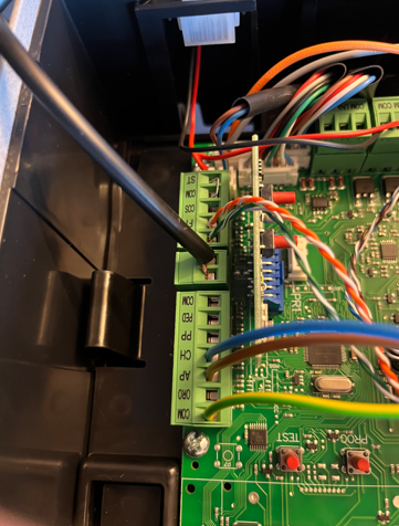 The photo below shows the connection of the antenna inside the gate: